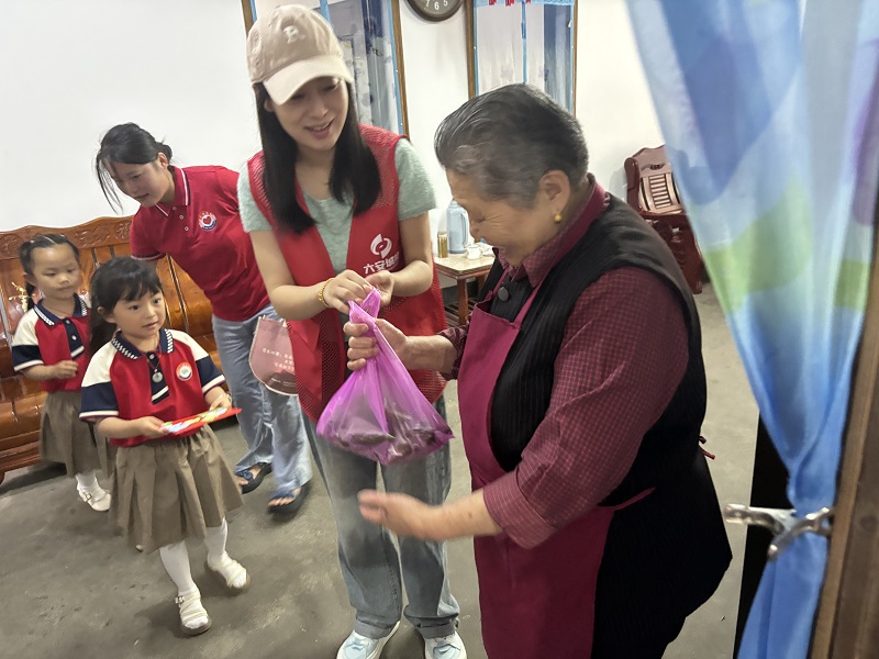 隨后,志愿者帶著包好的粽子和幼兒園的小朋友們一起去看望社區(qū)孤寡老人,并為他們送上了代表健康、平安的端午香包和節(jié)日卡片,飽含著對(duì)美好生活的衷心祝愿。